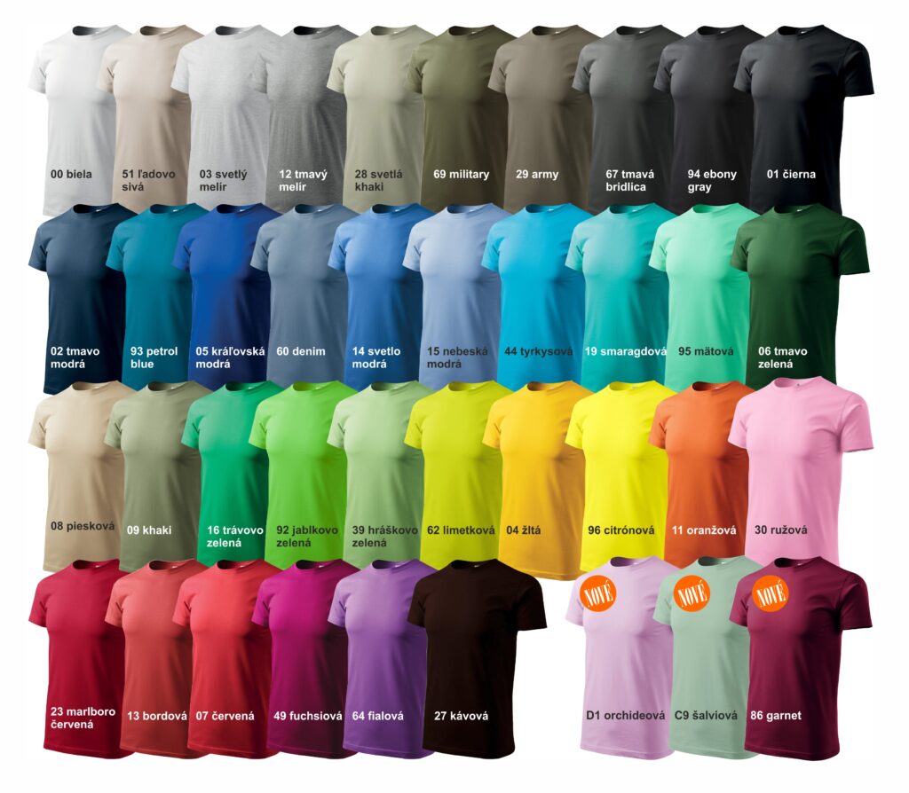 kvalitné značkové tričká, výber z viac ako 35 farebných odtieňov tričiek,